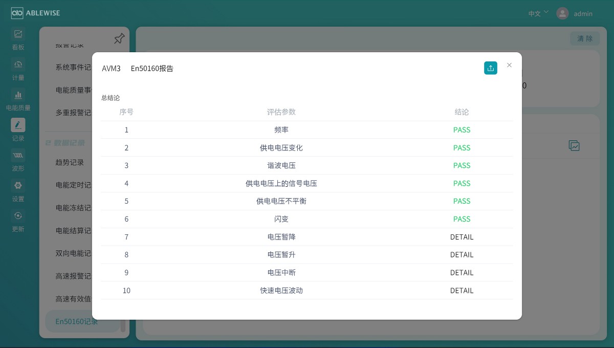 | EN50160統計報告 | 100份電能質量報告(每周輸出) | ● | ||