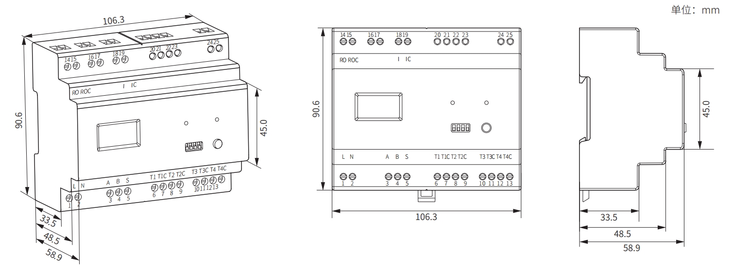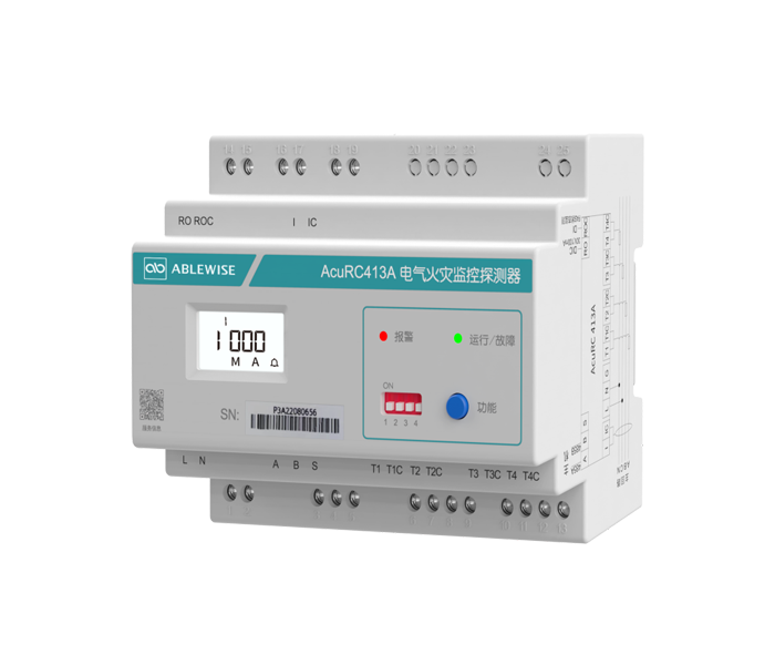 AcuRC413A 電氣火災監控探測器,設計遵從國家標準 GB14287.2-2014、GB14287.3-2014,具有剩余電流、溫度的實時監測與報警功能,常用于配電箱與配電柜的電氣火災預警。該產品帶有 1 路 RO 報警控制輸出,可聯動 FAS 系統,具備 1 路 RS485 總線通訊,可將測量值與報警信息遠程傳送至值班室的監控主機,及時提醒值班人員處理電氣火災隱患。