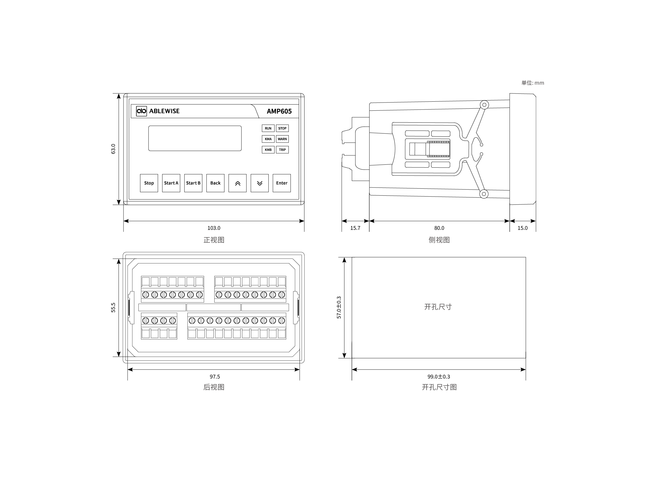 | 外形尺寸 | 63×103×110.7mm 開口尺寸為:99×57(±0.3)mm | ||