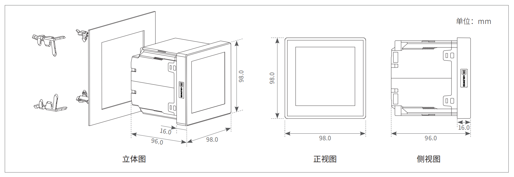 | 外形尺寸 | 98×98×96mm(開口尺寸: | 92×92mm) |